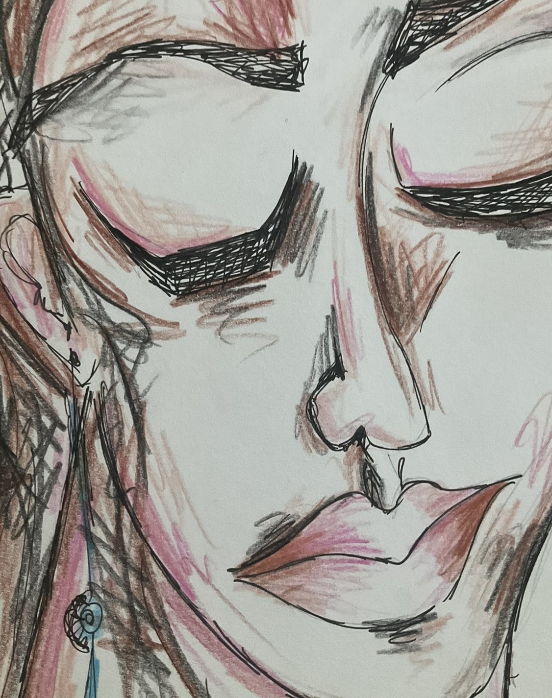 Pastel a pero na kartonu, rozměry 29,6x21cm (formát A4)